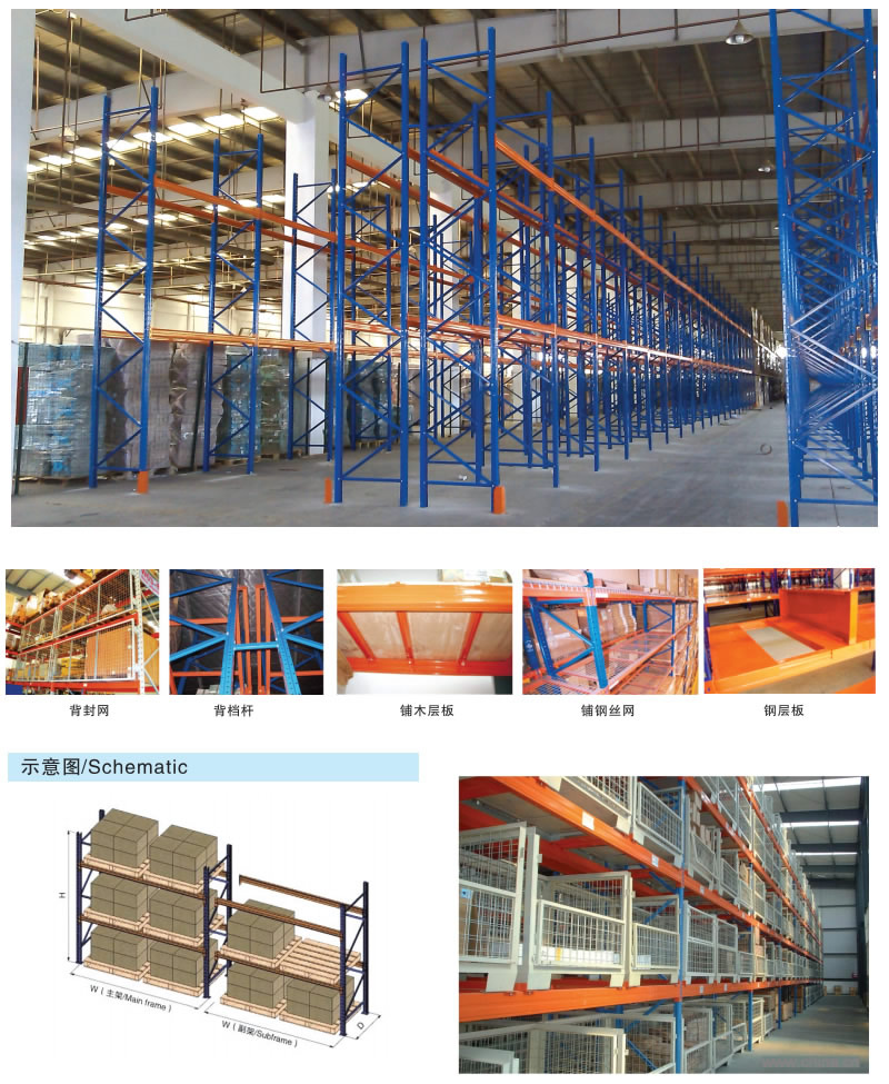 重型橫梁式貨架是目前使用應(yīng)用廣泛的貨架類型之一,具有較強(qiáng)的通用性,可適應(yīng)各種類型的貨物,可按貨物尺寸要求調(diào)解橫梁高度。重型橫梁式貨架主要由立柱、橫梁、橫撐、斜撐以及自鎖螺栓組裝而成。橫梁與立柱的連接多采用機(jī)械式的鎖扣結(jié)構(gòu),可隨意拆裝組合。橫梁采用特制的冷軋P型閉口梁;該結(jié)構(gòu)具有簡單可靠、重量輕、承載力強(qiáng)、造價(jià)低的特點(diǎn);柱卡與立柱連接時(shí)配有特殊設(shè)計(jì)安全銷,可以確保橫梁在外力撞擊下不會(huì)脫落?筛鶕(jù)存儲(chǔ)單元集裝設(shè)備的特性加裝如:隔檔、鋼層板(木層板)、金屬絲網(wǎng)層、倉儲(chǔ)籠導(dǎo)軌、油桶架等功能性附件。根據(jù)用戶實(shí)際使用情況:托盤載重要求、托盤尺寸、倉庫實(shí)際空間、叉車實(shí)際提升高度,可提供不同規(guī)格的橫梁式重型貨架以供客戶選擇。
