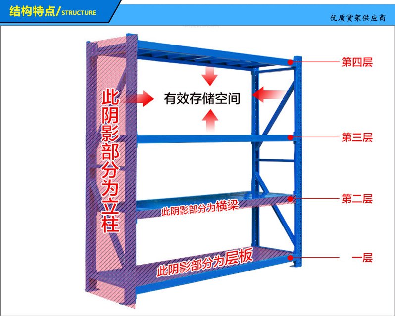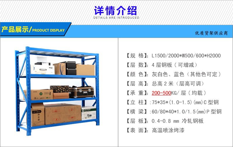 5、常用規(guī)格:L2000*D600*H2000mm,4層,每層鋪鋼層板或木層板。