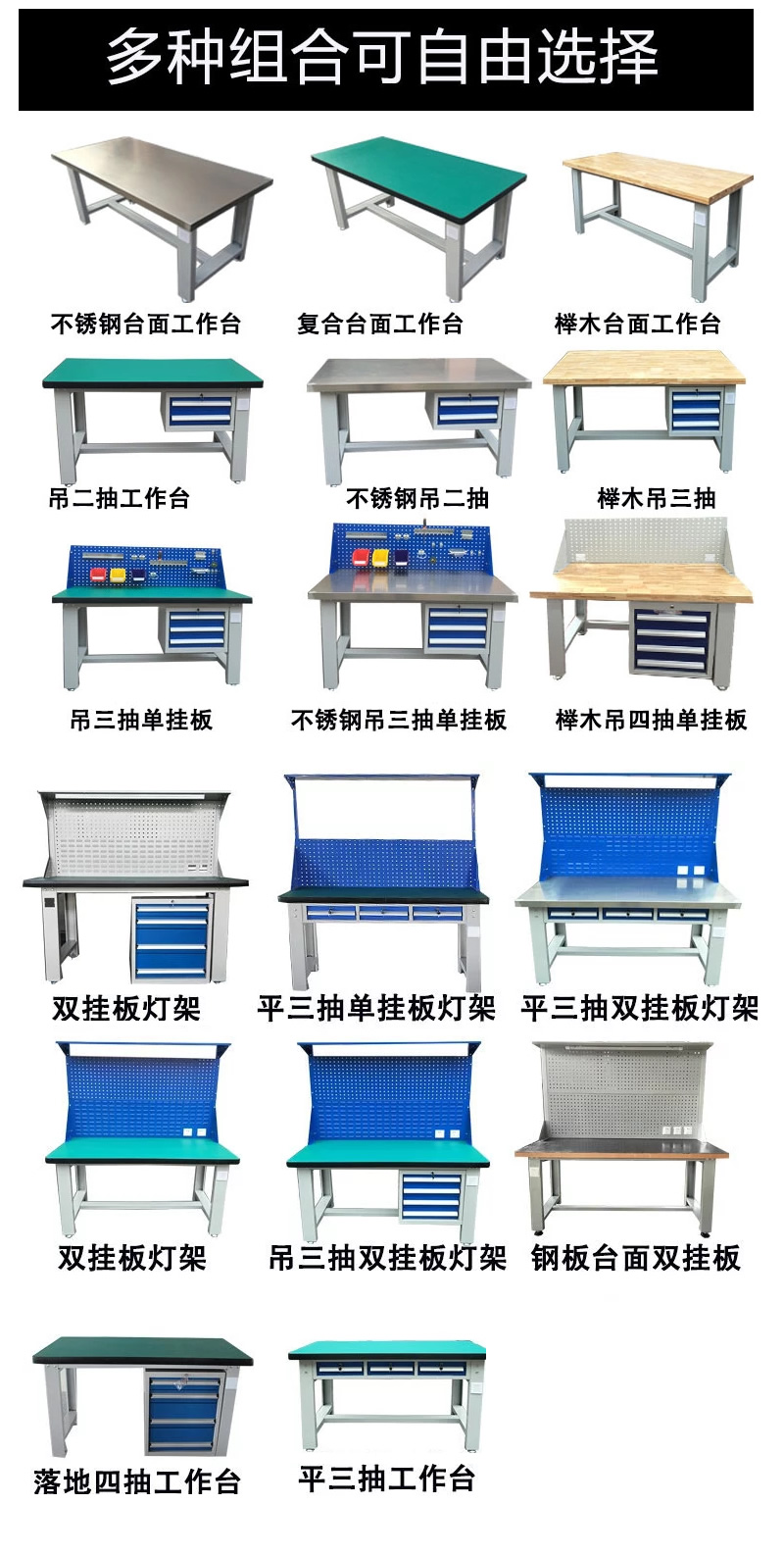 6、工作桌可加裝掛板,電器板,燈頂板、擱板等桌上部件,具有多種選擇,能夠滿足各種工位的需求。