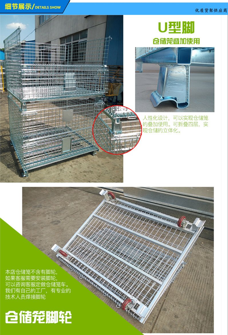 倉儲籠又叫倉庫籠、蝴蝶籠,是倉儲運輸中很重要的一類物流容器,具有存放物品容量固定、堆放整潔、存放一目了然、便于庫存清點等優(yōu)點,同時也提高了倉儲空間的有效利用率。此外,該產品堅固耐用、運輸便捷、能重復使用,能有效降低倉儲企業(yè)的人力消耗及包裝成本。此產品不僅可以用于工廠生產車間,而且可以用于超市作為展示促銷和倉儲,且可以在戶外使用。經過改進的倉儲籠可放于貨架、流水線,也可堆垛:帶輪子的倉儲籠可在車間方便快捷周轉,帶有PVC板或鐵板的倉儲籠可防止小件漏掉。