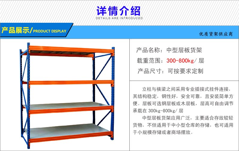 中型貨架適用于人工堆放作業(yè),適用于存放輕、小物品;常應(yīng)用于電子、服裝、醫(yī)藥、食品、電商倉儲(chǔ)、跨境電商配送中心等領(lǐng)域。